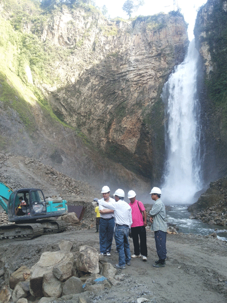 9月20日上午8時(shí),王總一行抵達(dá)印尼棉蘭國(guó)際機(jī)場(chǎng),隨即轉(zhuǎn)機(jī)前往PAKKAT水電站項(xiàng)目所在地。在項(xiàng)目經(jīng)理孫小軍等的陪同下,王總不辭辛苦深入到大壩施工區(qū),認(rèn)真察看了大壩、發(fā)電隧洞等施工現(xiàn)場(chǎng),他與現(xiàn)場(chǎng)施工人員一一握手并表示節(jié)日的慰問。王總察看施工現(xiàn)場(chǎng)并聽取匯報(bào)后,對(duì)大壩的建設(shè)情況以及工程外觀形象控制表示滿意,并結(jié)合自己的經(jīng)驗(yàn)對(duì)豎井的施工提出了建設(shè)性建議,重點(diǎn)強(qiáng)調(diào)了豎井施工安全生產(chǎn)的重要性。