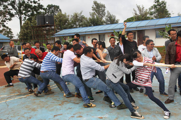 集團(tuán)資訊為了凝聚精神,交流感情,2014年12月25日,肯尼亞分公司第一屆迎新聯(lián)誼會(huì)在雙河正式舉辦。本次聯(lián)誼會(huì)共設(shè)拔河、籃球、CS三項(xiàng)團(tuán)體比賽項(xiàng)目,乒乓球、象棋、升級(jí)三項(xiàng)個(gè)人比賽項(xiàng)目及趣味套圈項(xiàng)目,肯尼亞辦事處及各在建項(xiàng)目均組隊(duì)參加了比賽。