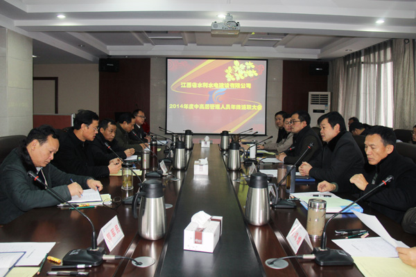 2015年1月31日,江西省水利水電建設有限公司2014年度年終述職大會在公司總部順利舉行。公司董事長、黨委書記王元旦,總經(jīng)理徐洪良,國內(nèi)、國外工作的中高層管理人員、項目經(jīng)理代表,員工代表共50多人參加了述職大會??偨?jīng)理徐洪良主持會議。