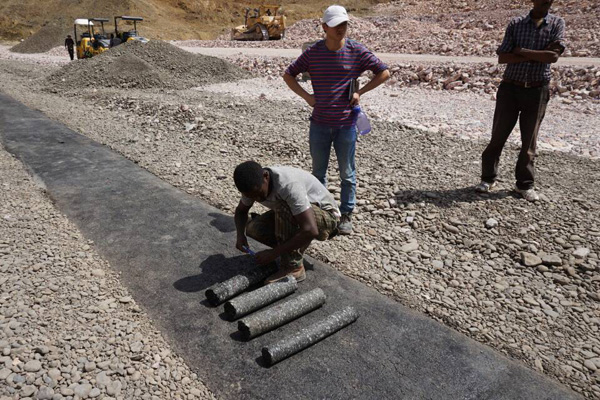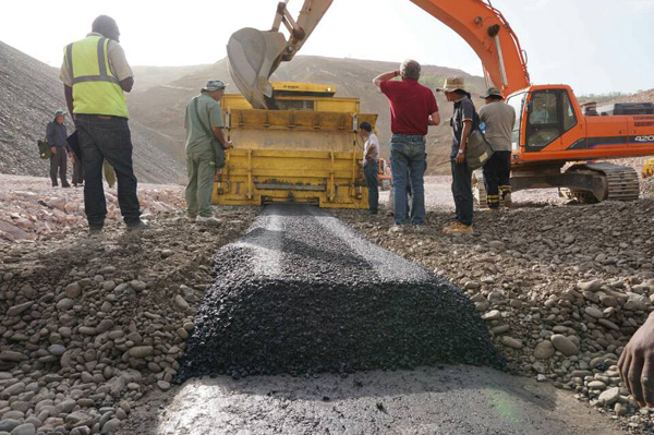 公司高度重視Wolkite瀝青混凝土芯墻的建設(shè),成立了以黃生寶為經(jīng)理的項(xiàng)目組領(lǐng)導(dǎo)班子,選派了一批技術(shù)過(guò)硬、經(jīng)驗(yàn)豐富、善于學(xué)習(xí)的技術(shù)和操作人員,并從國(guó)內(nèi)專門聘請(qǐng)從事該方面工作的專家親赴現(xiàn)場(chǎng)進(jìn)行技術(shù)指導(dǎo)和把關(guān)。在公司董事會(huì)的正確領(lǐng)導(dǎo)下,項(xiàng)目部全體成員緊緊圍繞著Wolkite瀝青混凝土芯墻項(xiàng)目全力施工。本著特事特辦的原則,國(guó)內(nèi)后勤組緊急采購(gòu)發(fā)送了一大批施工設(shè)備,為項(xiàng)目開(kāi)好頭打下了堅(jiān)實(shí)的基礎(chǔ)。為了優(yōu)質(zhì)高效地完成任務(wù),項(xiàng)目組全體人員精誠(chéng)團(tuán)結(jié)、夙興夜寐,不計(jì)白天黑夜,不管分內(nèi)分外,取得的成果得到了業(yè)主和監(jiān)理的肯定。從制定施工方案和技術(shù)指標(biāo),到裝配實(shí)驗(yàn)儀器和施工設(shè)備,從悶熱的室內(nèi)配合比工作,到烈日炎炎下的現(xiàn)場(chǎng)施工,無(wú)不凝結(jié)著大家的智慧與汗水。