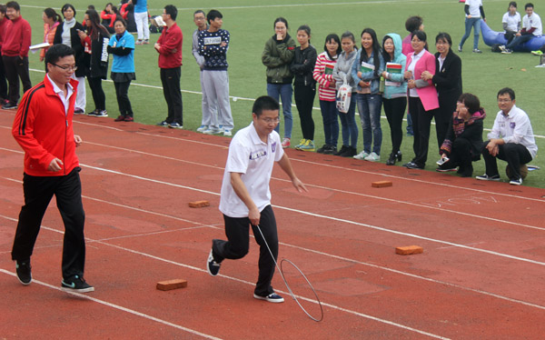 本屆趣味運(yùn)動會共設(shè)排山倒海、夾球接力、趕“豬”跑接力賽、推滾鐵環(huán)迎面接力、傳水接力、袋鼠跳、跳繩接力賽、瘋狂毛毛蟲、齊心協(xié)力、連環(huán)馬等十個比賽項(xiàng)目。我公司選派的30名運(yùn)動員參加了全部十個比賽項(xiàng)目,并取得了夾球接力第一名,推滾鐵環(huán)迎面接力、連環(huán)馬兩個項(xiàng)目第二名的好成績。