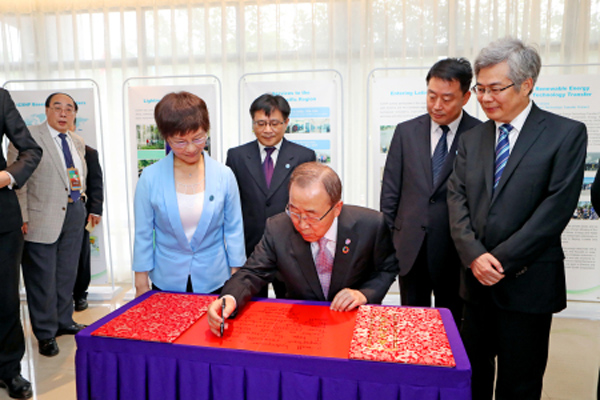集團(tuán)資訊 7月9日上午,聯(lián)合國(guó)秘書長(zhǎng)潘基文出席了由聯(lián)合國(guó)開發(fā)計(jì)劃署、聯(lián)合國(guó)工發(fā)組織、國(guó)際小水電中心共同舉辦的“應(yīng)對(duì)氣候變化南南合作主題會(huì)”,并發(fā)表重要講話,會(huì)議在國(guó)際小水電中心舉行。聯(lián)合國(guó)副秘書長(zhǎng)吳紅波、中國(guó)駐聯(lián)合國(guó)代表劉結(jié)一大使等陪同出席。
