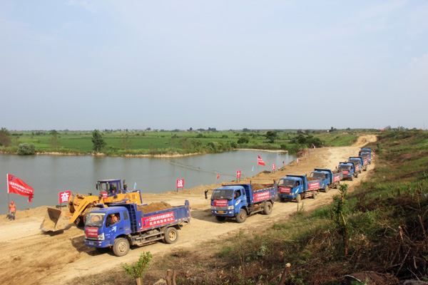 集團(tuán)資訊受前期連續(xù)強(qiáng)降雨及長(zhǎng)江洪水倒灌、頂托影響,九江市河湖水位長(zhǎng)時(shí)間處于超警戒水位狀態(tài),導(dǎo)致該地區(qū)防汛形勢(shì)十分嚴(yán)峻,圩堤險(xiǎn)情隨時(shí)可能發(fā)生,特別是堤腳處有池塘的圩堤更易出現(xiàn)險(xiǎn)情。為確保廬山市沙湖山圩堤長(zhǎng)期穩(wěn)固,我司在接到該市防汛指揮部的除險(xiǎn)加固任務(wù)后,立即派遣抗洪搶險(xiǎn)突擊隊(duì)前往現(xiàn)場(chǎng)進(jìn)行搶險(xiǎn),以穩(wěn)固圩堤,確保圩堤內(nèi)村莊百姓及農(nóng)田安全。經(jīng)過(guò)現(xiàn)場(chǎng)勘查,突擊隊(duì)決定沿著圩堤腳有池塘的地段填出一條長(zhǎng)約1公里、寬20米的壓浸平臺(tái)進(jìn)行加固處理。搶險(xiǎn)方案確定后,公司迅速組織了3臺(tái)挖掘機(jī)、2臺(tái)裝載機(jī)、36臺(tái)自卸汽車等機(jī)械設(shè)備及40多名作業(yè)人員頂著炎炎烈日進(jìn)行施工,力求在10天內(nèi)完成搶險(xiǎn)任務(wù),確保圩堤安全。