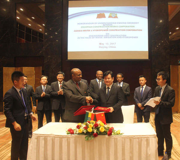 5月13日,在“一帶一路”國際合作高峰論壇分會場北京千禧大酒店,在埃塞俄比亞國防部、外交部、工業(yè)部、建設部等六位部長的見證下,公司與埃塞俄比亞建設集團簽署全面戰(zhàn)略合作協(xié)議,雙方將在水電站、農田灌溉、城市供水、污水處理等工程建設領域深化合作。根據(jù)協(xié)議內容,公司將成為埃塞俄比亞水利工程建設領域的優(yōu)先合作伙伴。