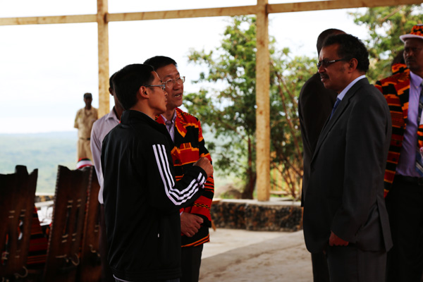 結(jié)束對我公司KURAZ項(xiàng)目視察后,覃儉參贊一行返回阿巴門奇市代表中國駐埃大使出席了阿巴門奇市建市50周年慶典活動及捐贈活動。埃塞俄比亞總理海爾瑪里亞姆及埃方外交部長接見中方一行,并握手致謝。郭惠明主任就江西水建在埃塞俄比亞的發(fā)展情況及南方州KURAZ項(xiàng)目的建設(shè)進(jìn)展情況向埃塞俄比亞總理、外長作了匯報?;顒咏Y(jié)束后,中方一行還多次分別與南方州政府相關(guān)要員進(jìn)行了會談。