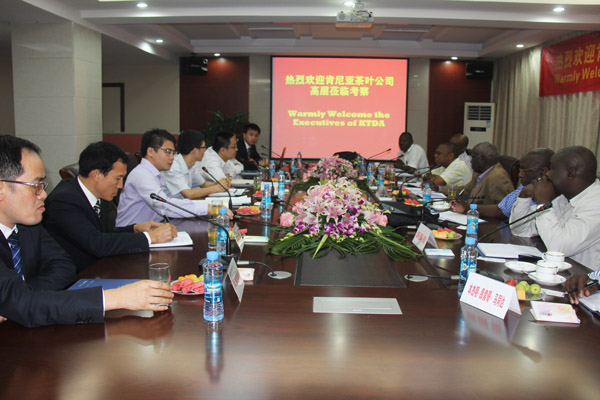 2014年9月上旬,肯尼亞茶葉發(fā)展有限公司董事Philip Kibirech NG’Etich先生一行七人應邀來我公司參觀考察,旨在加深雙方了解和建立互惠共贏的合作。總經(jīng)理徐洪良代表公司對他們的到來表示熱烈歡迎,總會計師王義生、總工程師胡鴻煌及海外公司相關(guān)負責人參加了會見并陪同肯尼亞客人參觀了公司總部各部門。