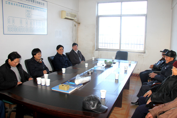 1月15日下午,省水利廳廳長(zhǎng)孫曉山率領(lǐng)廳副巡視員周江紅、廳辦公室主任王純、廳人事處處長(zhǎng)戴金華和離退休干部處處長(zhǎng)張魯江等前往我公司南昌縣職工生活基地,看望慰問離退休老同志。公司董事長(zhǎng)兼總經(jīng)理王元旦陪同參加了慰問活動(dòng)。