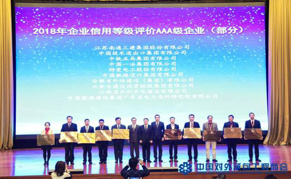 集團(tuán)資訊12月5日,中國對(duì)外承包工程商會(huì)第七屆理事會(huì)第四次全體會(huì)議在山東濟(jì)南隆重召開,來自全國各地的140多家理事單位的300多名代表參加會(huì)議。公司董事、海外公司執(zhí)行董事張周平出席會(huì)議。會(huì)議頒發(fā)了“2018年企業(yè)信用等級(jí)評(píng)價(jià)AAA級(jí)企業(yè)(部分)”牌匾,公司憑借良好的業(yè)績(jī)和口碑,再次榮獲中國對(duì)外承包工程企業(yè)信用評(píng)價(jià)AAA級(jí)信用企業(yè),并在現(xiàn)場(chǎng)受邀上臺(tái)接受授牌。