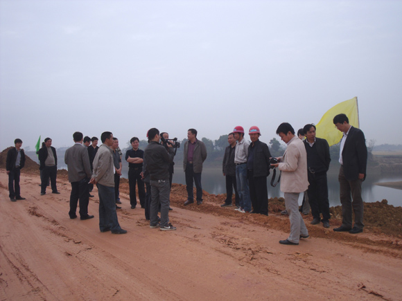 2011年11月18日,省水利廳文林副廳長(zhǎng)在上饒市水利局、萬年縣政府相關(guān)領(lǐng)導(dǎo)的陪同下,來到我司承建的鄱陽(yáng)湖二期防洪工程第六個(gè)單項(xiàng)梓埠聯(lián)圩除險(xiǎn)加固工程萬年縣梓埠1標(biāo)視察指導(dǎo)工作。