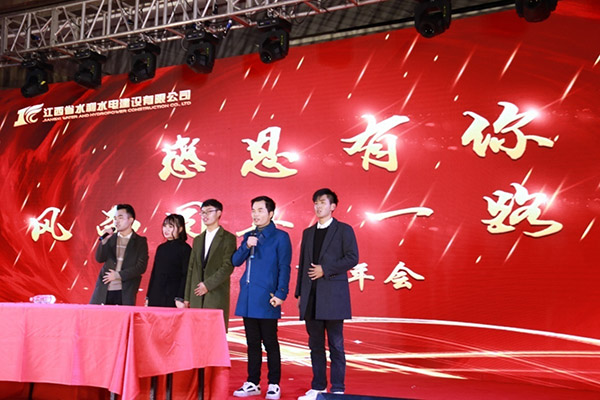 鮮紅的綢帶,迎來明媚的新春;火紅的笑臉,洋溢著節(jié)日的喜慶。隨后的文藝匯演在舞蹈《鼓舞飛揚》中拉開帷幕,舞蹈,歌曲聯(lián)唱,情景劇、詩朗誦、相聲、大合唱等文藝節(jié)目輪番上演,整場演出精彩絕倫,高潮迭起。年會中穿插了《2018年工程巡禮》、《國內外員工拜年》視頻,豐富的表現(xiàn)形式反映了一年來公司取得的豐碩成果和公司員工在工作、生活中的點點滴滴,體現(xiàn)了江西水建人昂揚向上的精神面貌。